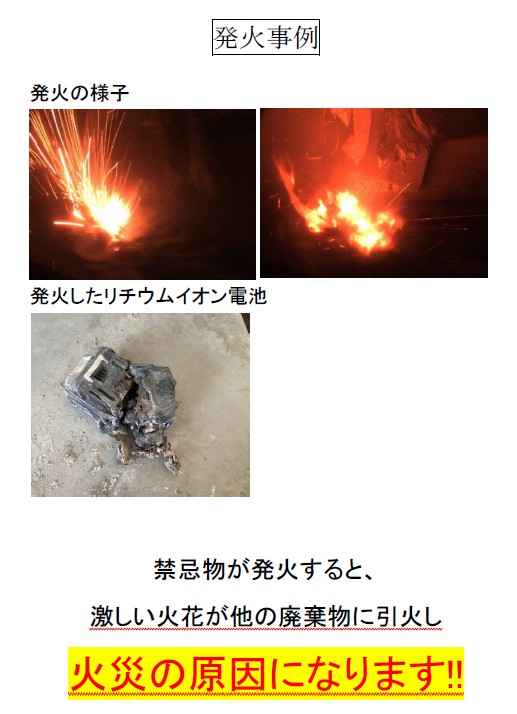 社外に対しては、排出事業者様への注意喚起に活用しています。発火リスクを正しく理解していただき、混入を減らすために、「禁忌物混入防止に関するお願い」という注意喚起文書を作成し、実際の発火画像を添付して案内しています。